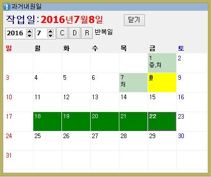 R 버튼을 선택하면 반복일을 선택할 수 있습니다