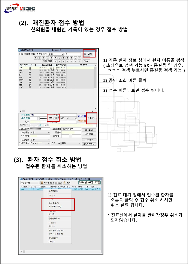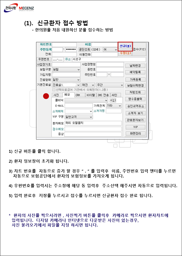 뉴 한의사랑 접수실 메뉴얼 [이미지]