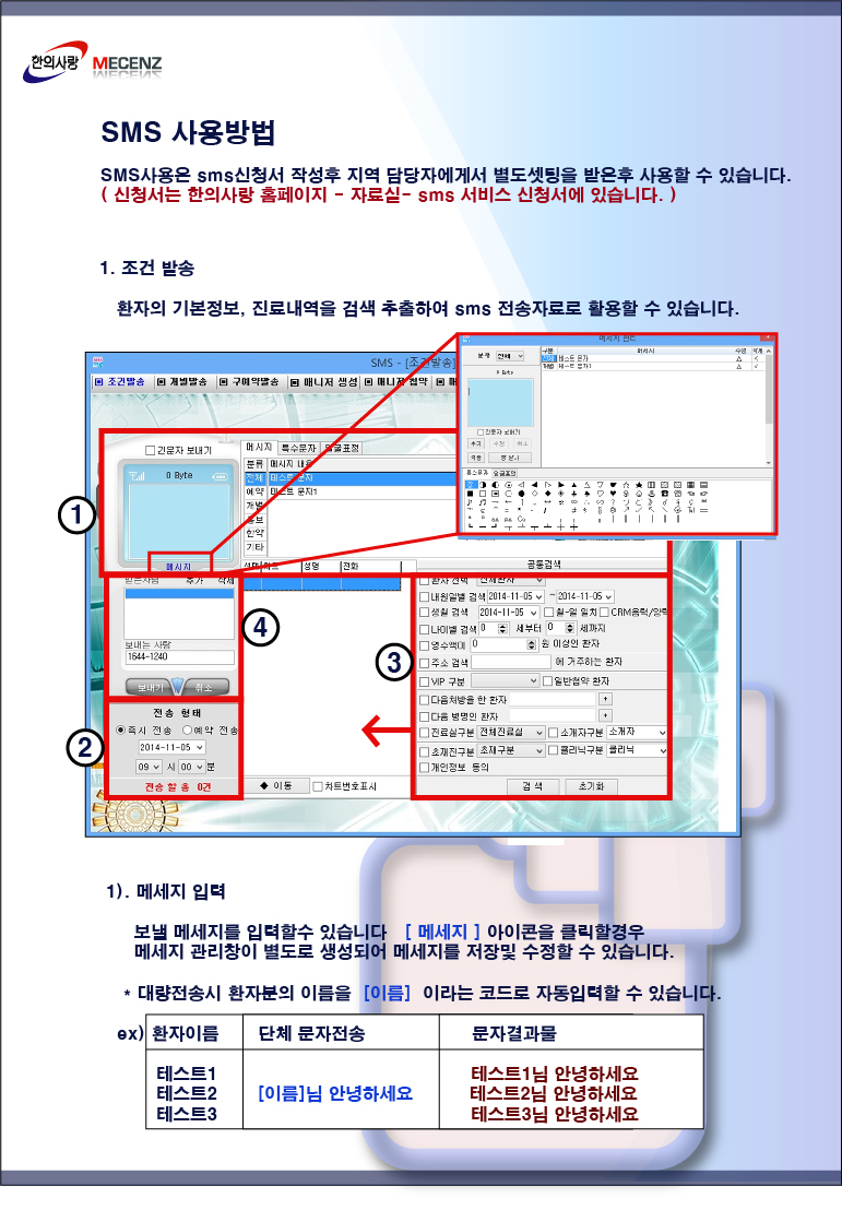뉴한의사랑 SMS 사용방법 [ 이미지 ]