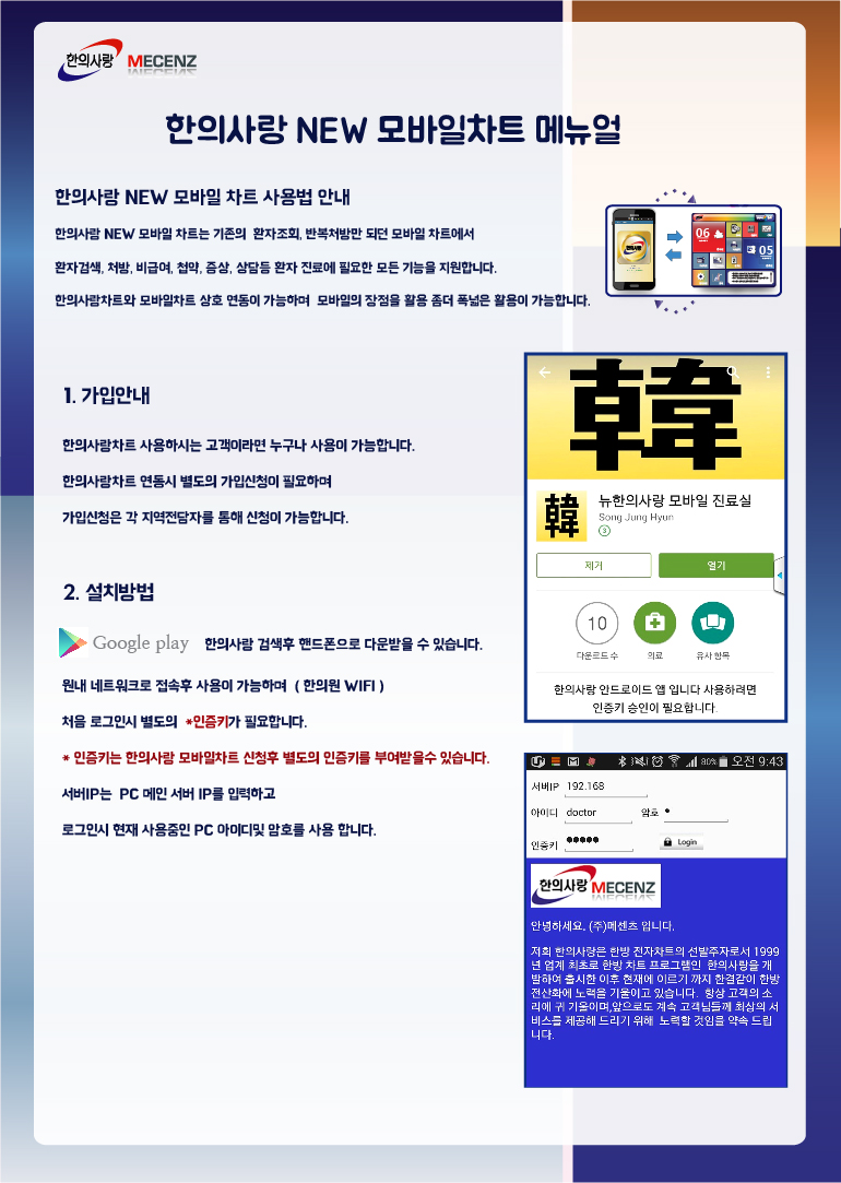 뉴한의사랑 모바일차트 사용법 안내 [ 이미지 ]