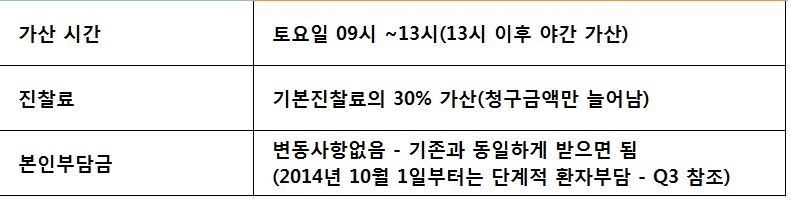 Q3.의원급 진찰료(약국은 조제료 등) 토요가산의 환자 본인부담은 어떻게 되나요?