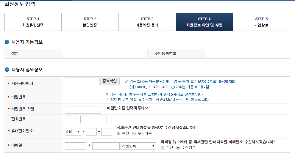 홈텍스 가입방법은 아래 와 같습니다. (회원가입시 개인정보, 본인인증 절차가 있어 한의사랑에서 지원이 불가합니다.)