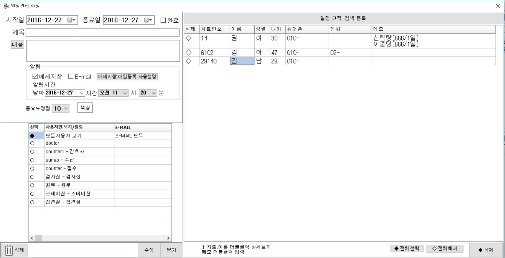 - 예약환자 선택 SMS 전송 옵션추가