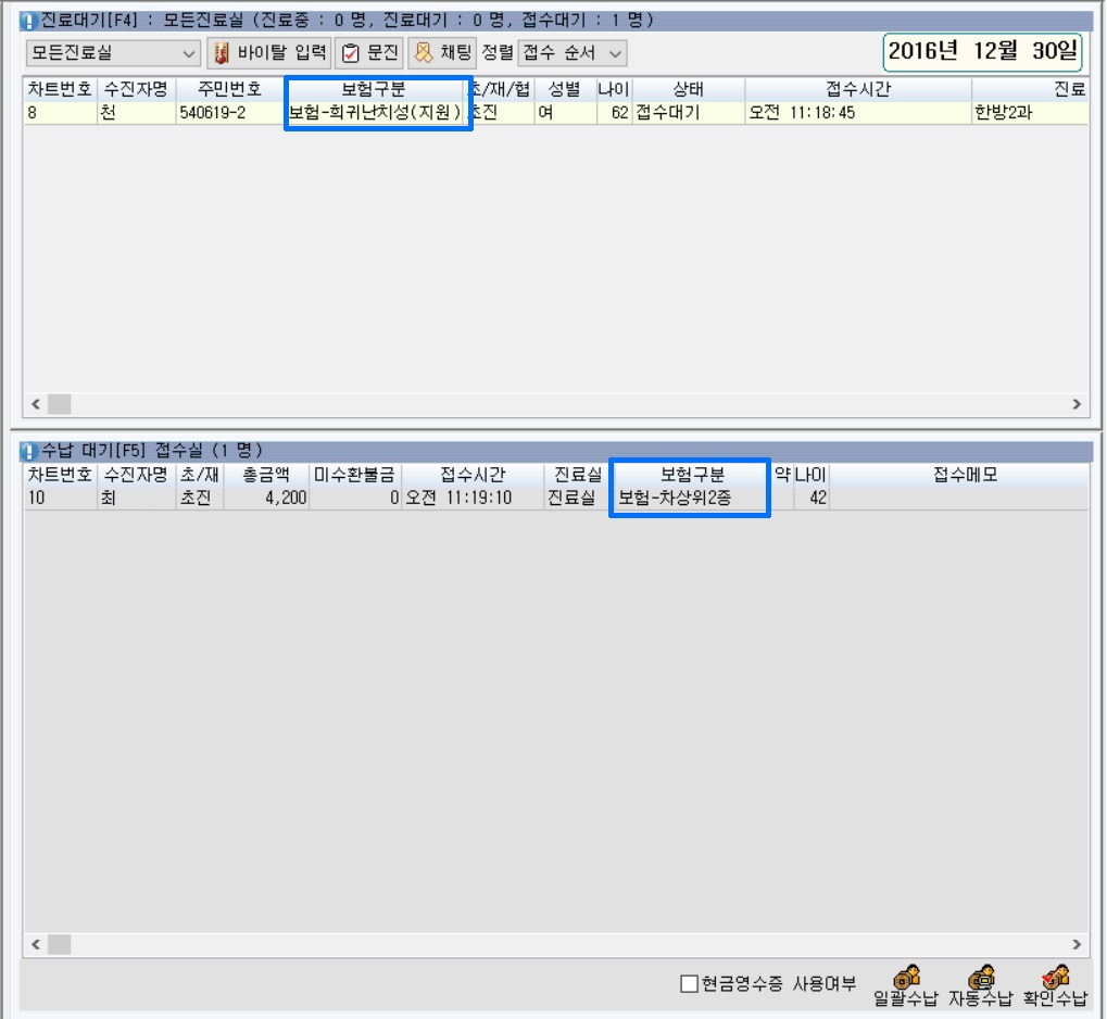 - 접수실 접수,수납 보험정보 추가