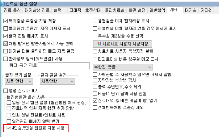 [ 4인실,5인실 입원료 자동 사용] 체크 해제후 사용하시면 됩니다.