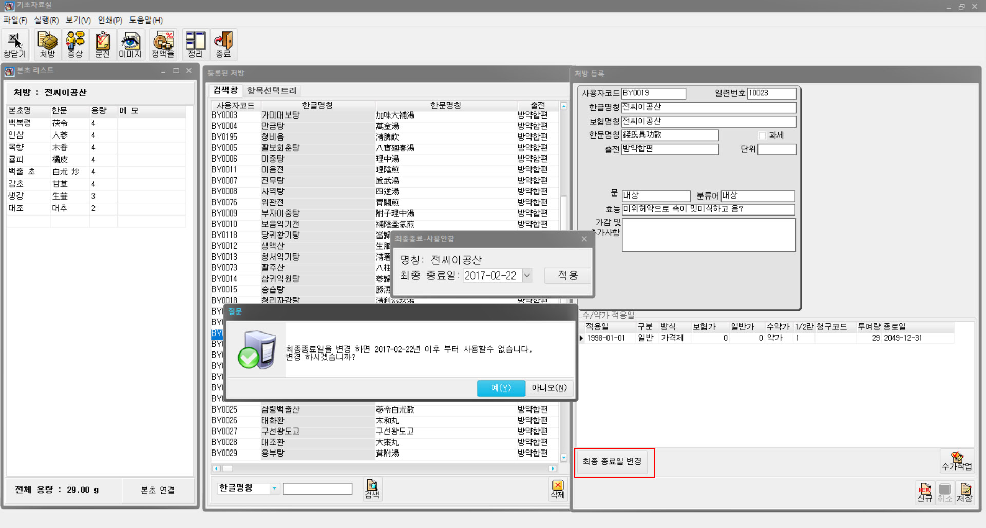 보험 약재 [정] 적용시 g단위로 나오는 오류가 발견되어 일부 수정되었습니다.
