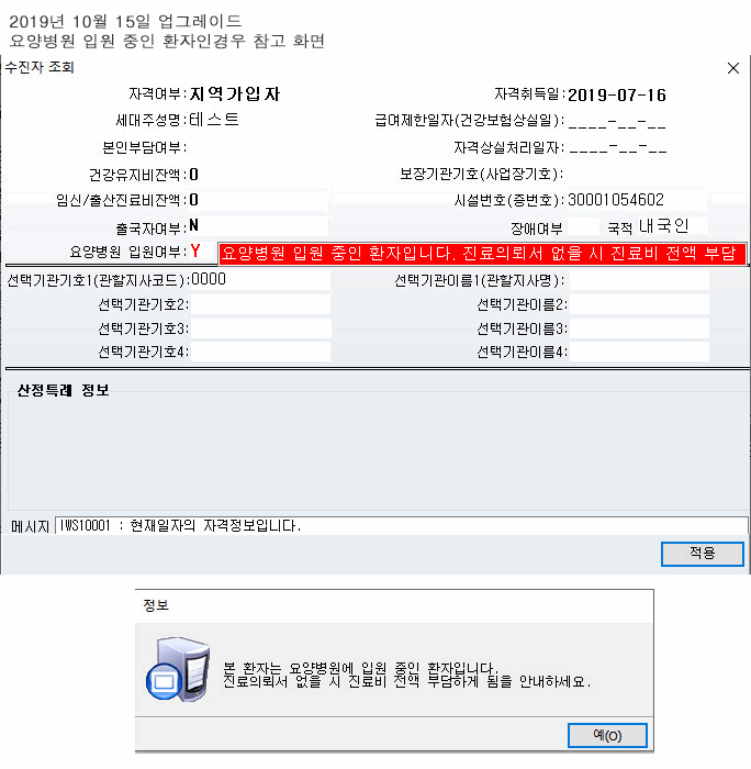 요양병원 입원중 환자 수신자 조회, 본인부담 변경은