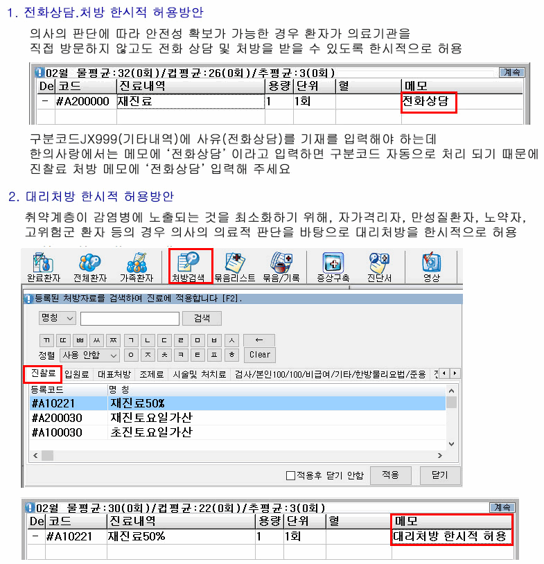 전화상담은 첨부파일(전화상담_한시적)과 같이 진찰료 메모에 전화상담 이라고