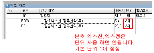 B. 임의처방 본초(엑스산) 단위 수정이 오류가 생길 수 있습니다.