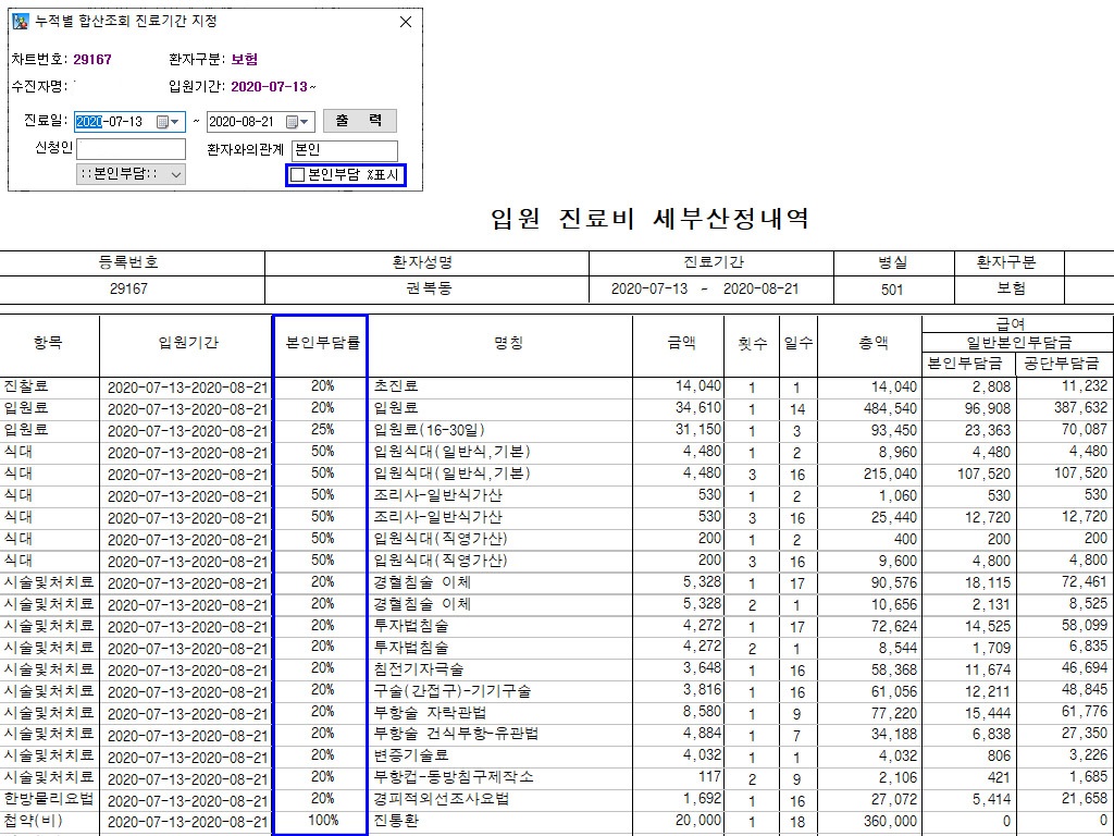 본인부담율% 을 개인별 본인부담율을 받은것을 쉽게 확인할 수 있도록 변경되었습니다.