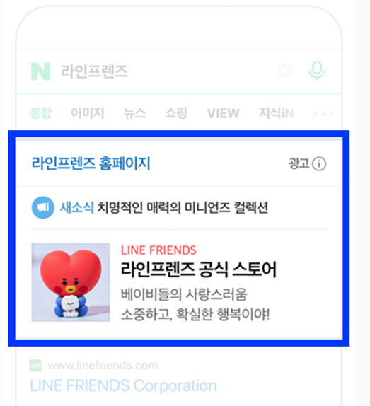 통합검색 결과 상단에 브랜드와 관련된 최신 콘텐츠를