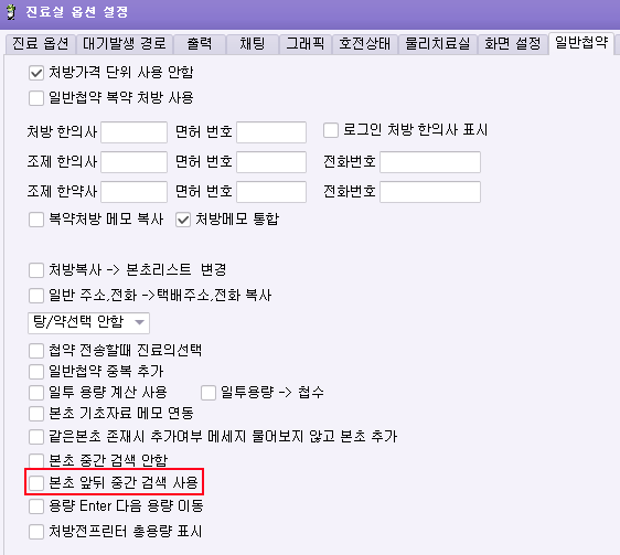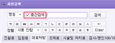 본초 중간 검색 안함 체크 안하면 첫글자 부터 중간 검색을 합니다.