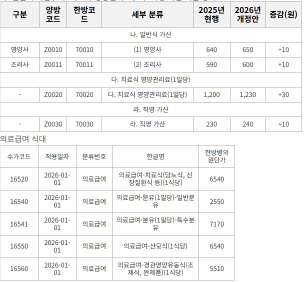 2026년 환산지수, 식대, KCD-9 업데이트
