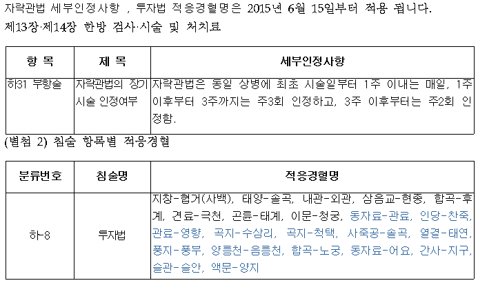 자락관법 한방검사.시술및 처치료 항목 세부인정사항...