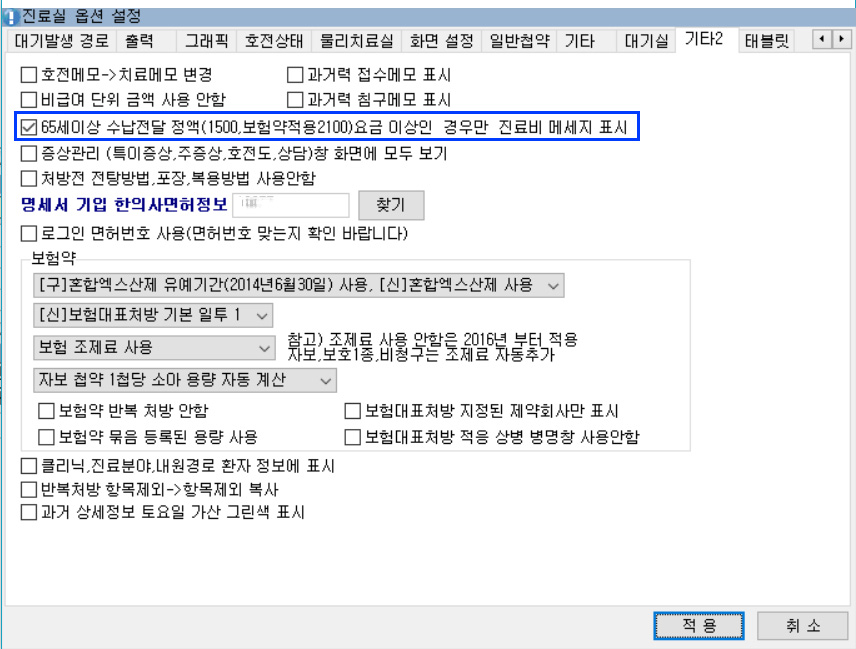 2. 입원외래 메세지출력 업그레이드 -  65세이상 환자에게 적용되는 금액 관련 메세지가 추가 되었습니다.