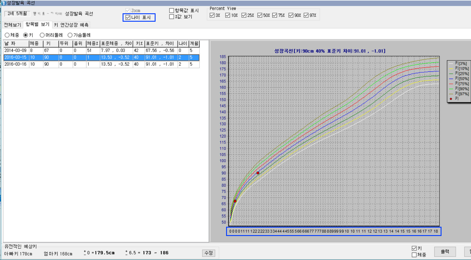 3. 성장 발육곡선 업그레이드  -  성장발육곡선항목에 나이가 추가되었습니다.
