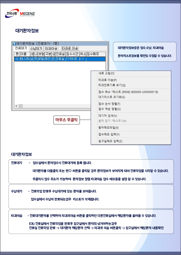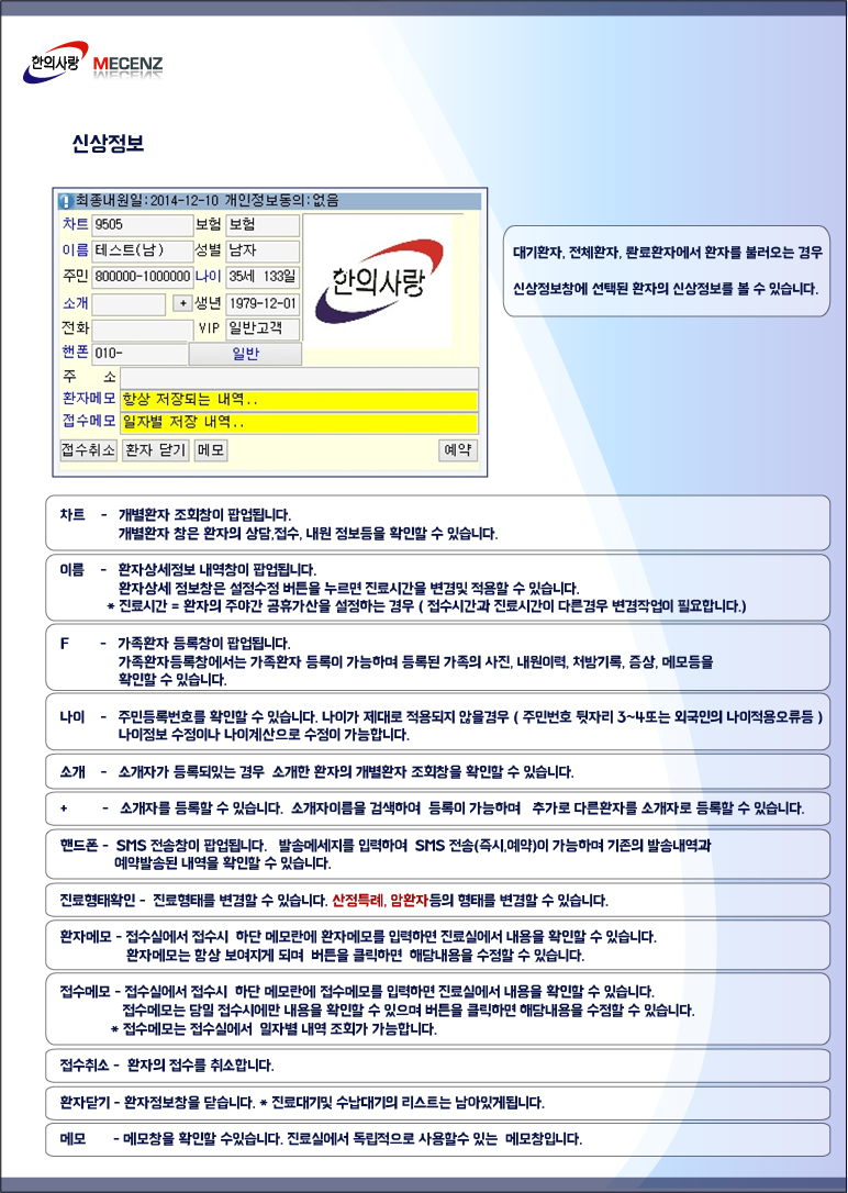 뉴한의사랑 진료실 화면안내 [ 이미지 ]