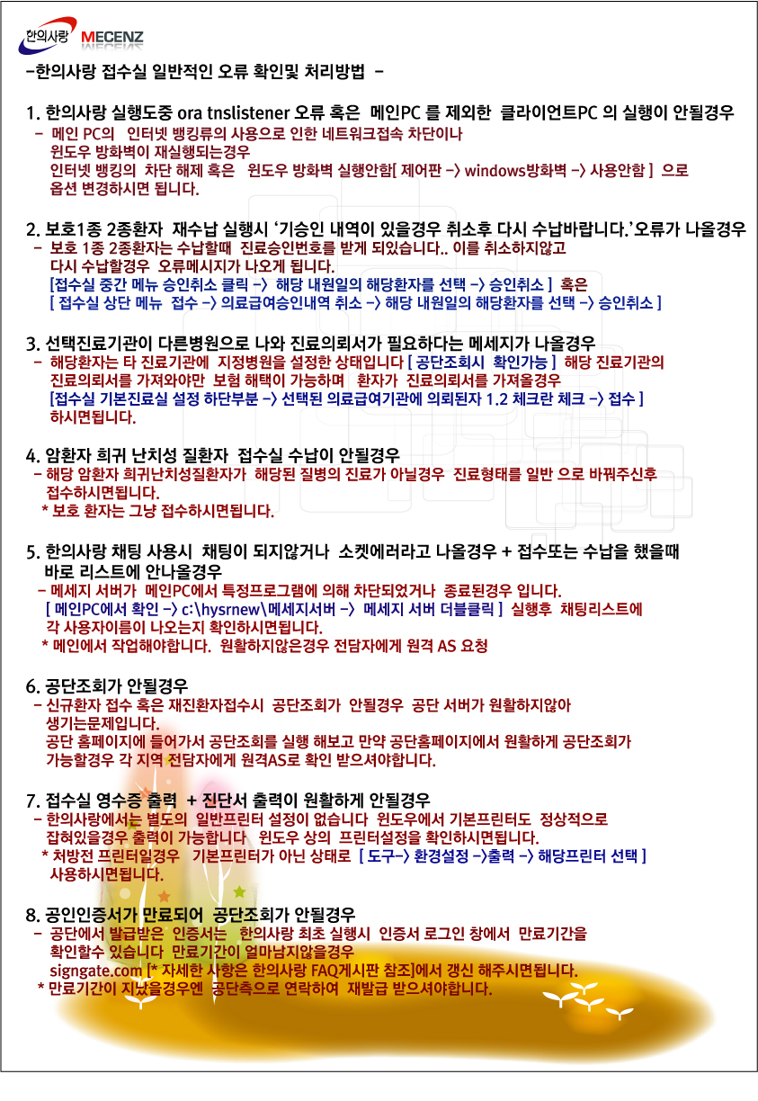 [TIP] 한의사랑 접수실 일반적인 오류 확인및 처리 방법