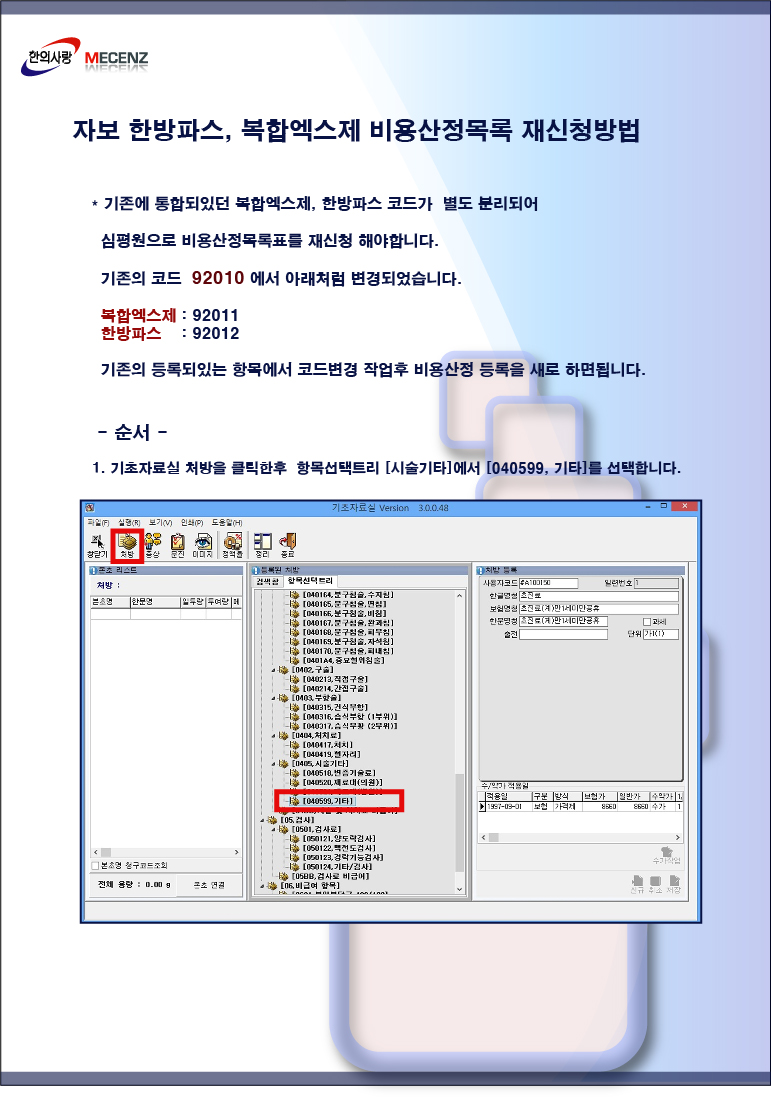 [TIP] 자동차보험 한방파스 혼합엑스제 코드변경 비용산정 등록방법 안내