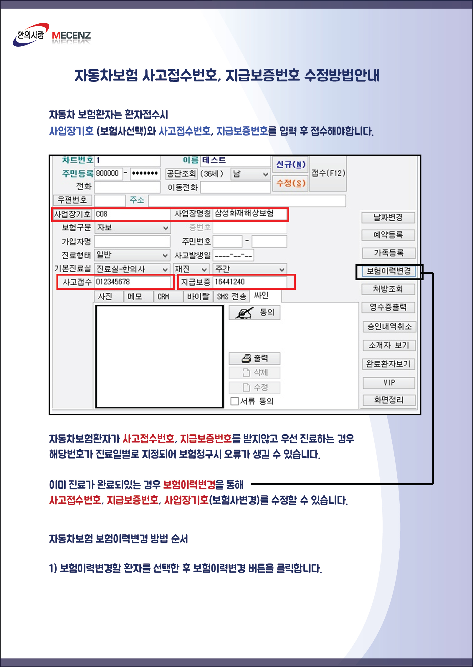 [TIP] 자동차보험 사고접수번호, 지급보증번호 수정방법안내
