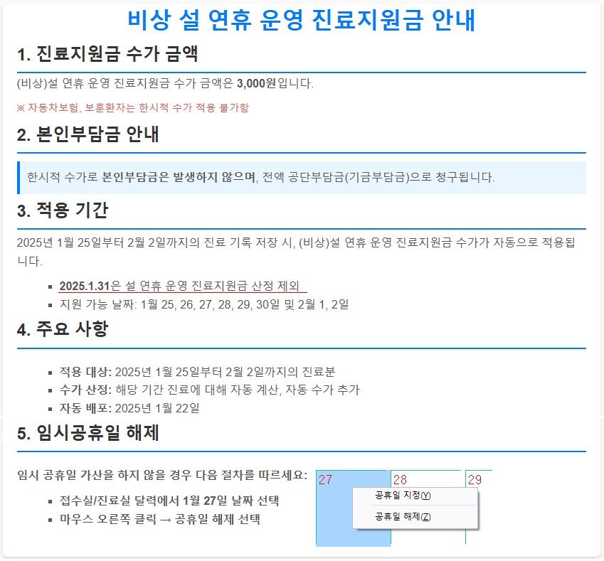 비상 설 연휴 진료지원금 안내