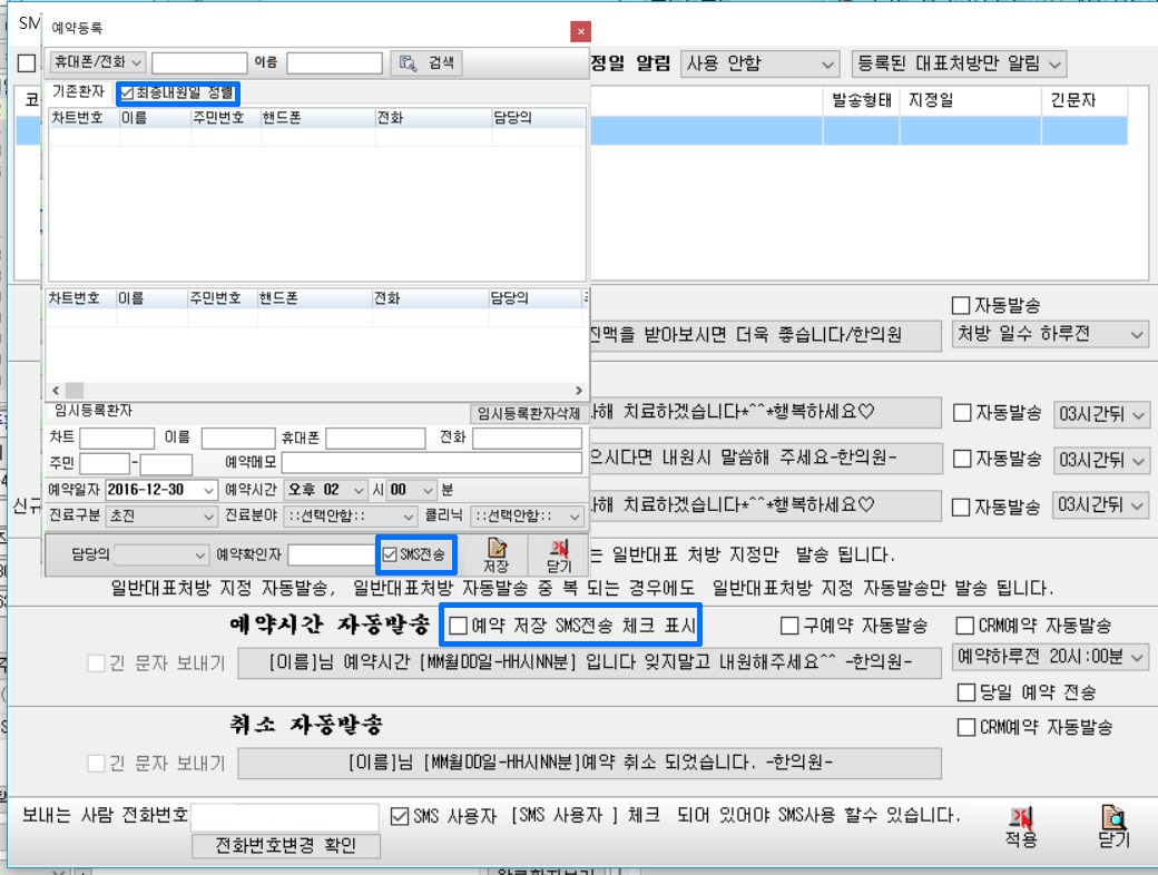 - 예약환자 선택 SMS 전송 옵션추가