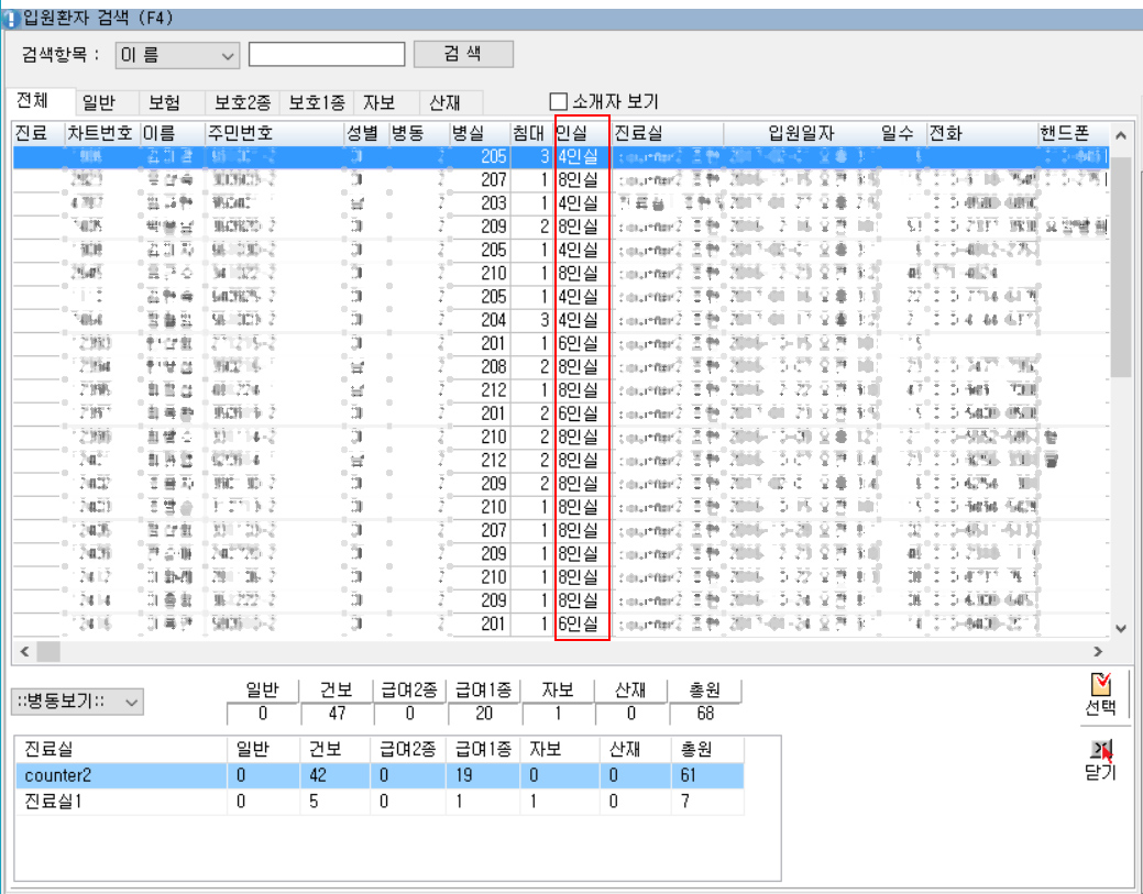 접수실 환자 더블클릭시 나오는 개별환자 검색에서