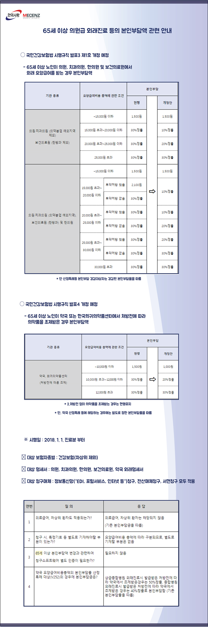 [팝업] 2018년 65세 의원급외래진료등의 본인부담액관련안내