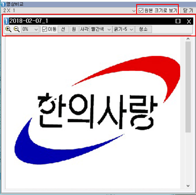원본크기옵션 사용시 %확대, 펜기능을 사용할 수 있습니다.
