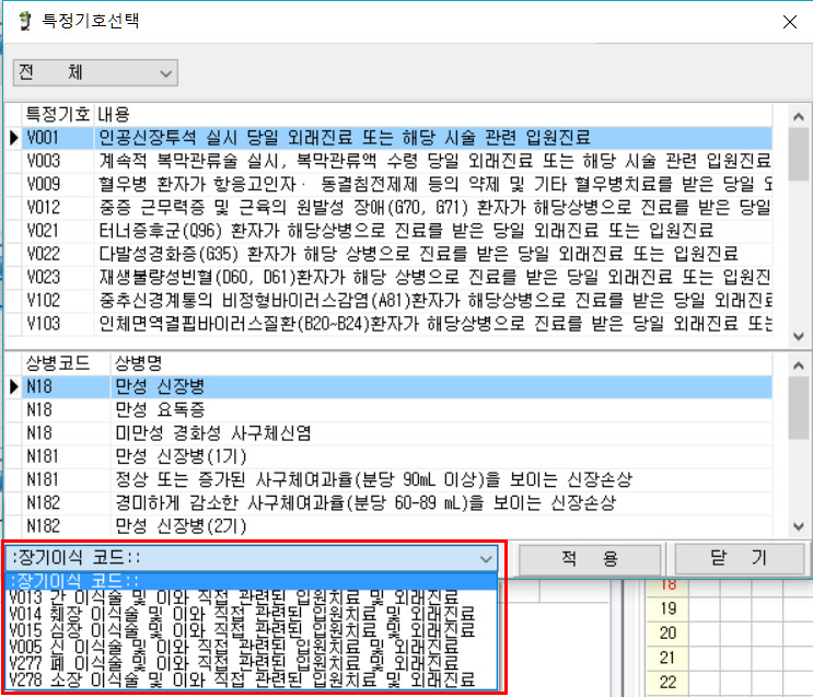 산정특례 장기이식환자 특정기호선택 옵션이 추가되었습니다.