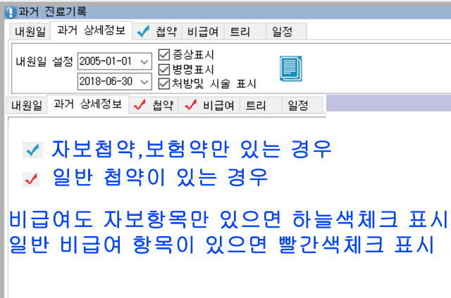 비급여탭이 추가되면서 첩약, 비급여 택 체크표시가 추가되었습니다.
