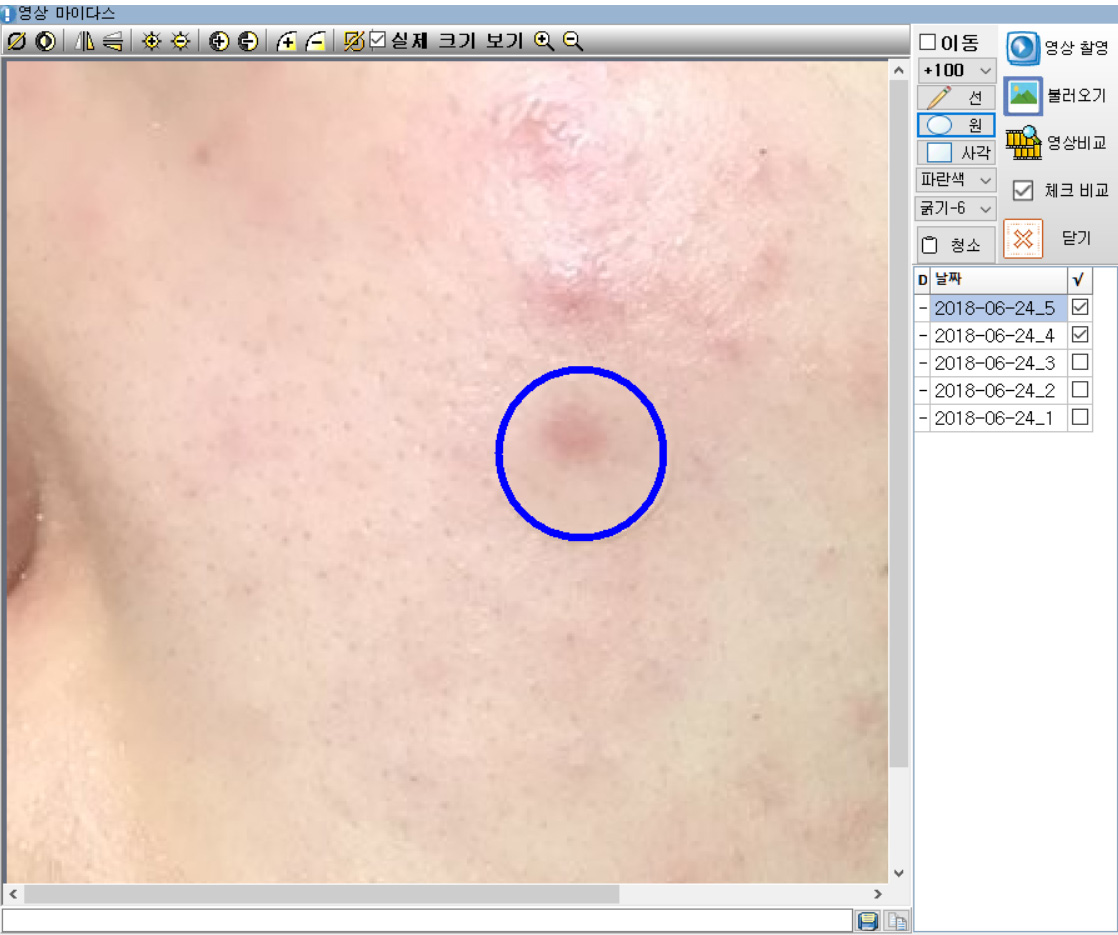 진료실 영상 저장후 환자별 내용을 입력할 수 있는 그림판 기능이 추가되었습니다.