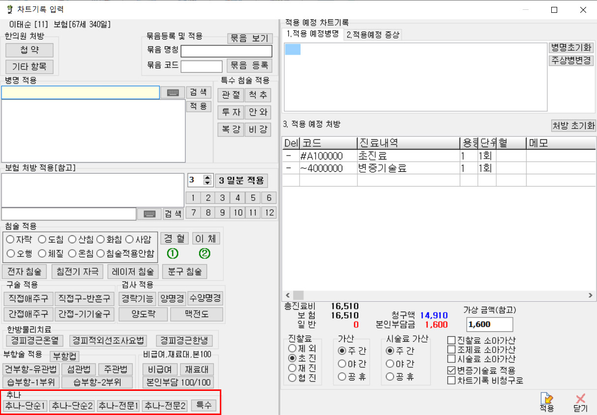 3월부터 시행되는 추나요법을 금일차트에서 적용할 수 있도록 업그레이드 되었습니다.