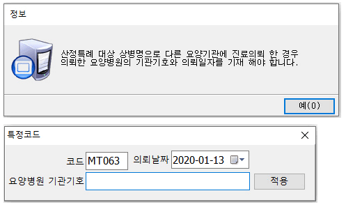 요양병원 입원환자중 산정특례 병명진료인경우 전달할 때 자동으로 아래와 같이 나옵니다.