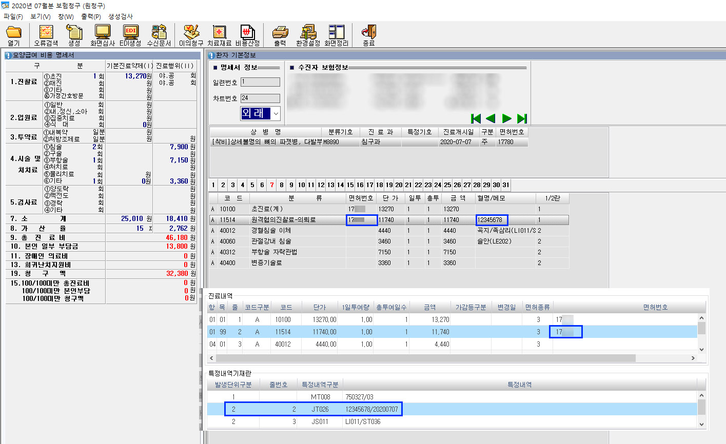 참고) 원격협의진찰료는 특정기호 JT026에 요양기호와
