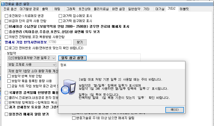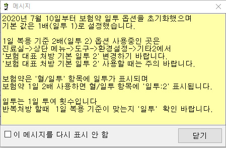 진료실 보험 약 옵션 일투 변경 알림 업데이트