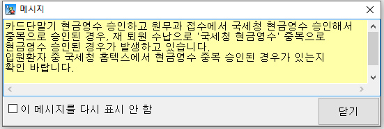 원무과 접수 현금승인 중복차단 메세지 업그레이드