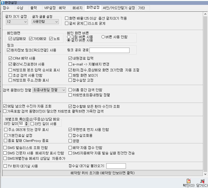 접수, 진료실 도구 -> 환경설정 화면구성이 개선되었습니다.
