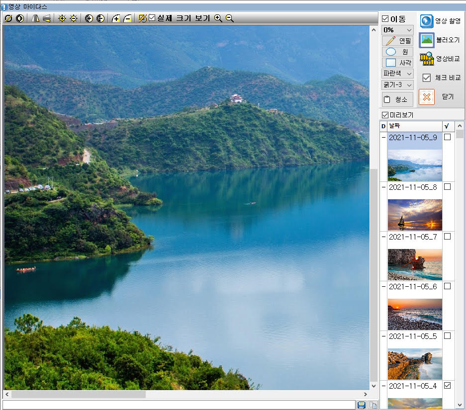 영상마이다스 화면에서 날짜별 미리보기 기능을 지원합니다.