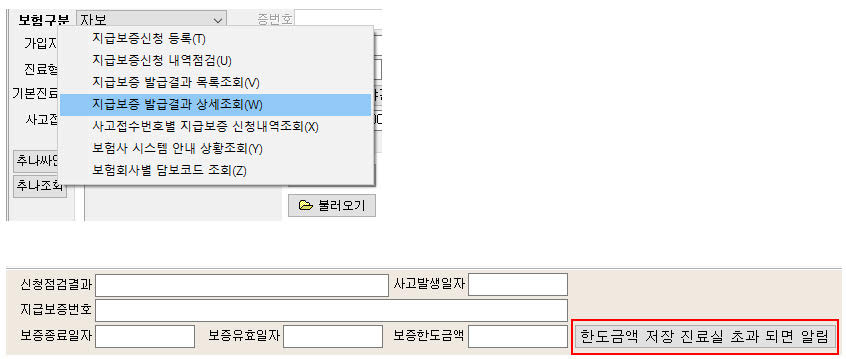 진료실 자보 보증한도금액 초과 하면 알림 추가 업그레이드
