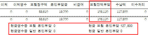 출력에는 공간부족으로 절사액이 보험전액부담으로 변경 됩니다.