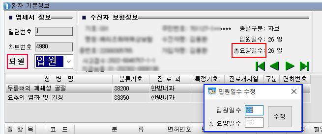 입원 요양일수 변경 기능추가 업그레이드