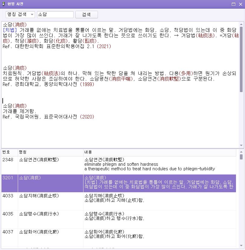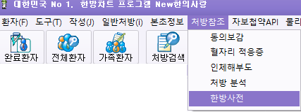증상관리, 특이증상에서 한방사전을 찾고 싶다면 단어를 셀렉트 지정하고 CTRL+P 키 누르면