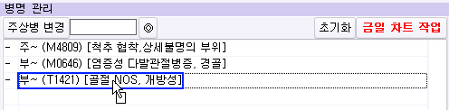 예) T1421 병명을 제1부상병 으로 변경 하려면 T1421 병명을 마우스 클릭한 상태에서