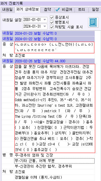 진료실 과거진료기록 증상 자동 줄 바꿈 추가