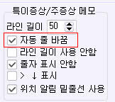 참고) '라인 길이 사용 안함' 옵션 체크 하면 자동 줄 바꿈 안됩니다.