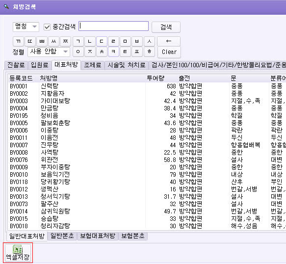대표처방리스트를 엑셀저장 할수있도록 아이콘 추가 업데이트 되었습니다.