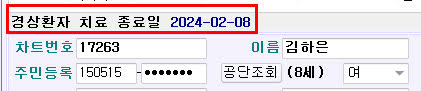 접수실 자보 경상환자 종료일 항목이 차트에 출력되도록 업데이트 되었습니다.