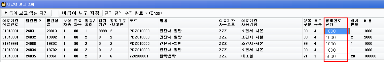 비급여 단가수정 추가 업그레이드