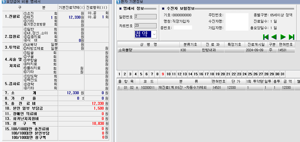 추석 지원금 수가 진료내역 없는경우 출력되지않습니다.